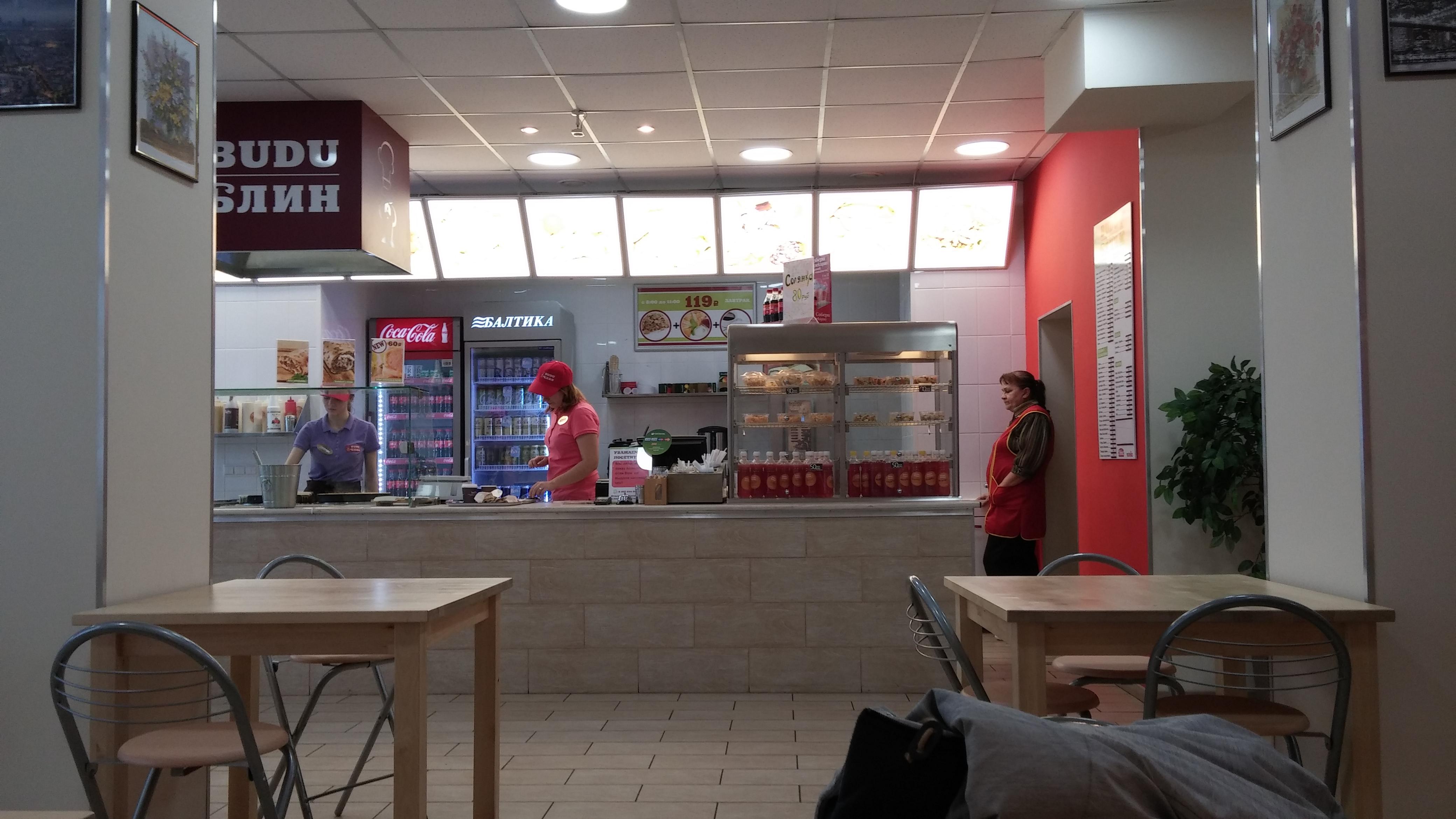 🍟 Адрес, телефон, часы работы фаста фуд и 6 отзывов посетителей о «Блинная BUDU Блин».
